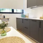 Az önellátás lehetőségét megkönnyíti a konyha, amely mosogatógéppel és kenyérpirítóval felszerelt. Az apartman továbbá belátható közelségre fekszik a Matiko metróállomástól.
